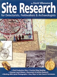 THE SECRETS OF SITE RESEARCH FINALLY REVEALED… "I have just received my copy of the new book Site Research by David Villanueva. This book is a cracker for all of us as the longer that I am in this hobby the more I have a thirst for more data. The new folks to the hobby will find it's a way to advance their knowledge in a short time. The illustrations are on a par with Benet's [a superb colour finds catalogue] and there is an insight when it comes to doing the homework prior to going on a dig is a must. Computer sites for data are also included and pictures of old maps from centuries past are very interesting. Well I think that I have said enough to wet the appetite of those who want to get the best out of the hobby. It certainly won't break the bank and there is always the Xmas list." JBM, Bristol, UK |